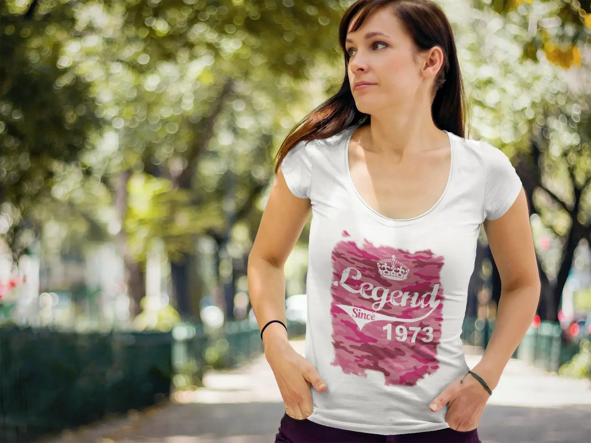1973, Aufdruck „Geburtstag“, weiß, Damen-Kurzarm-Rundhals-T-Shirt 00284